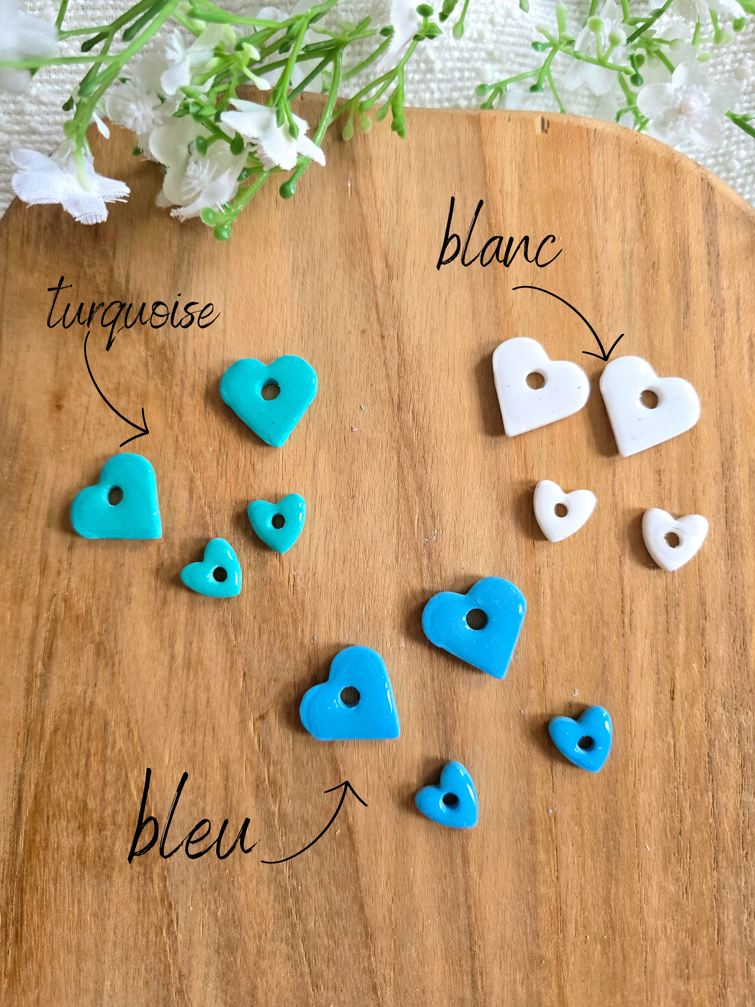 Pampilles façonnées à la main dans notre atelier nantais, en argile polymère.