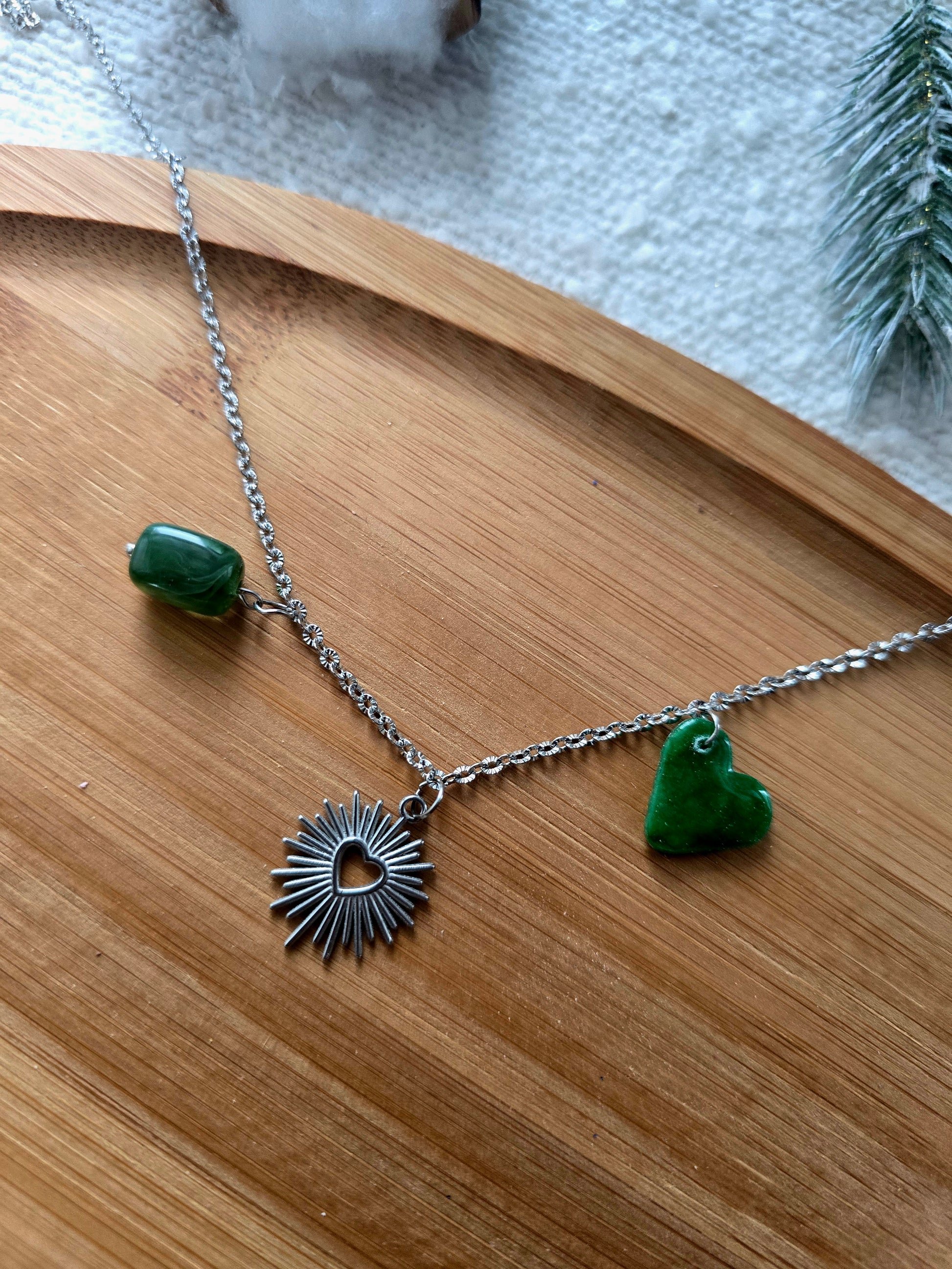 Collier à charms entièrement assemblé à la main, conçu pour être porté seul ou superposé.