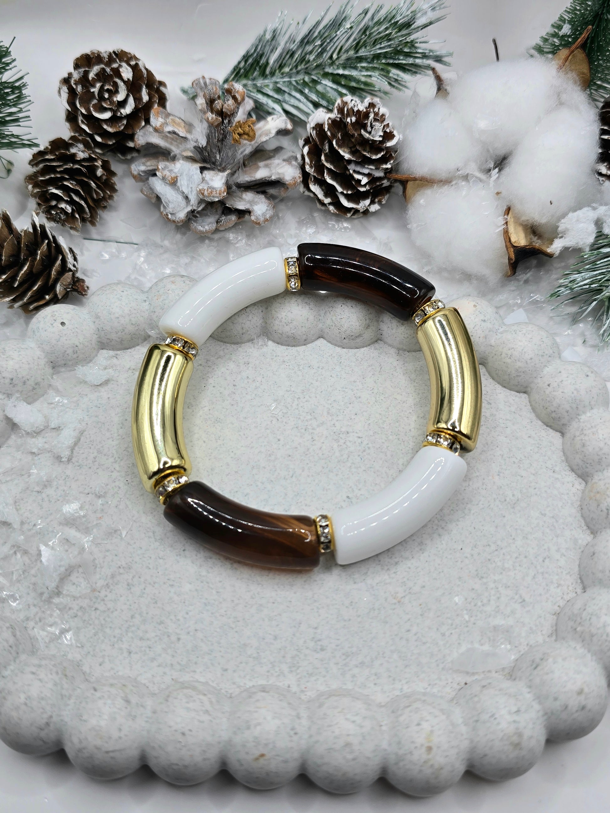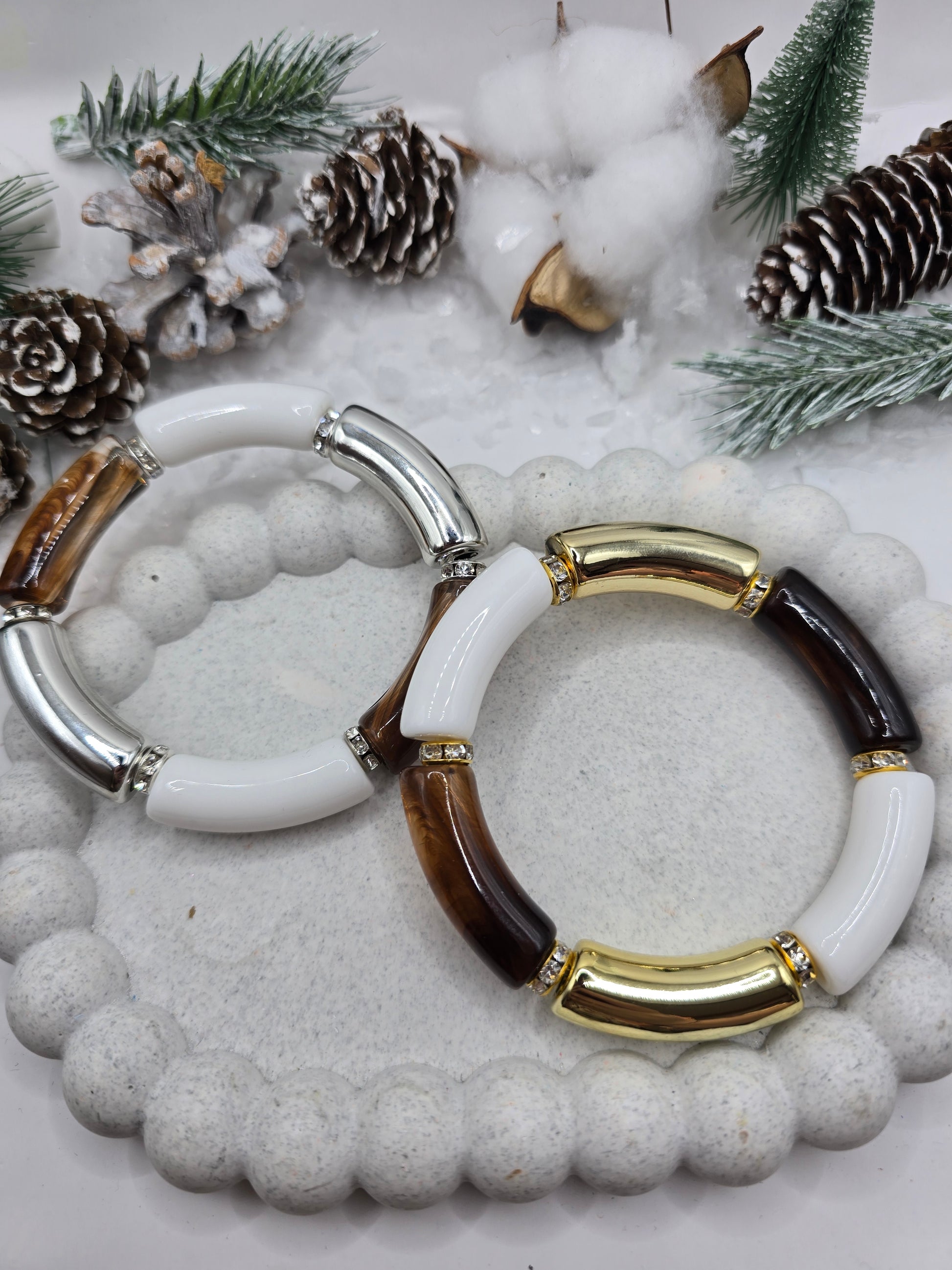 ⭐ Description courte — Bracelets perles tubulaires incurvées